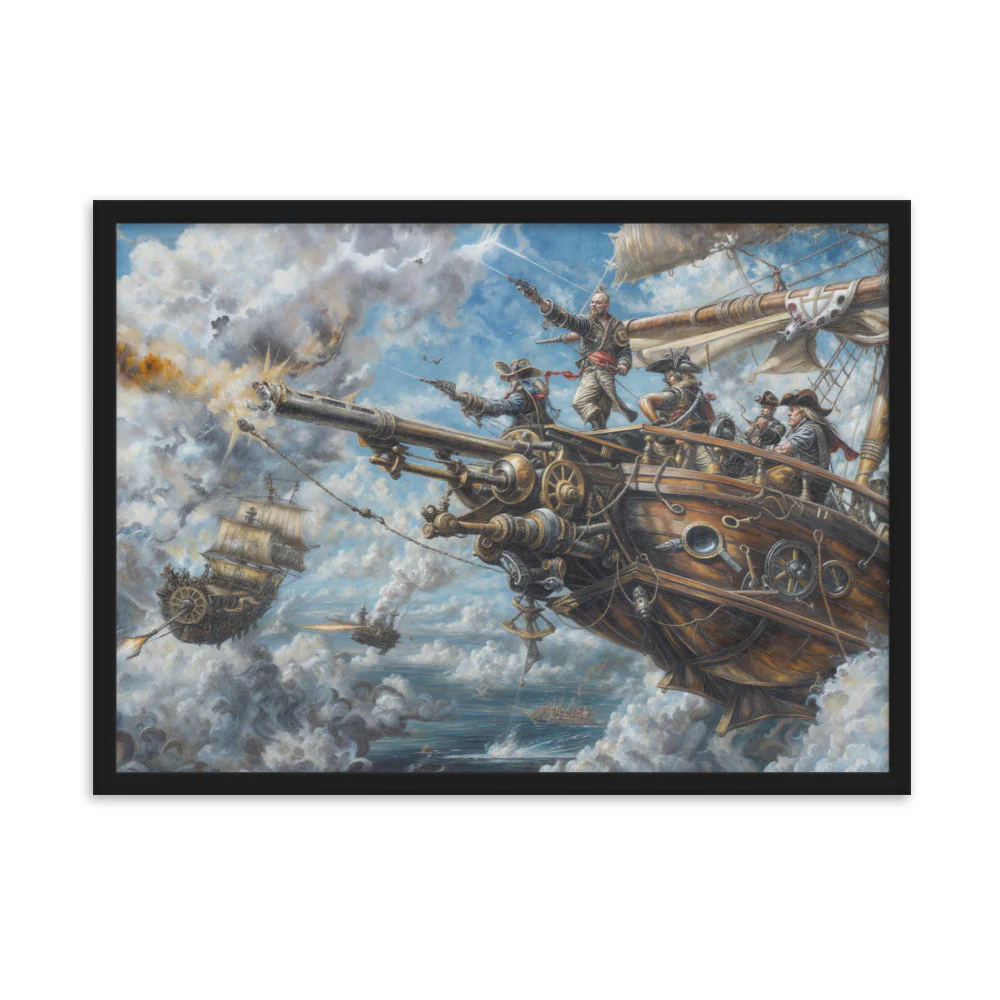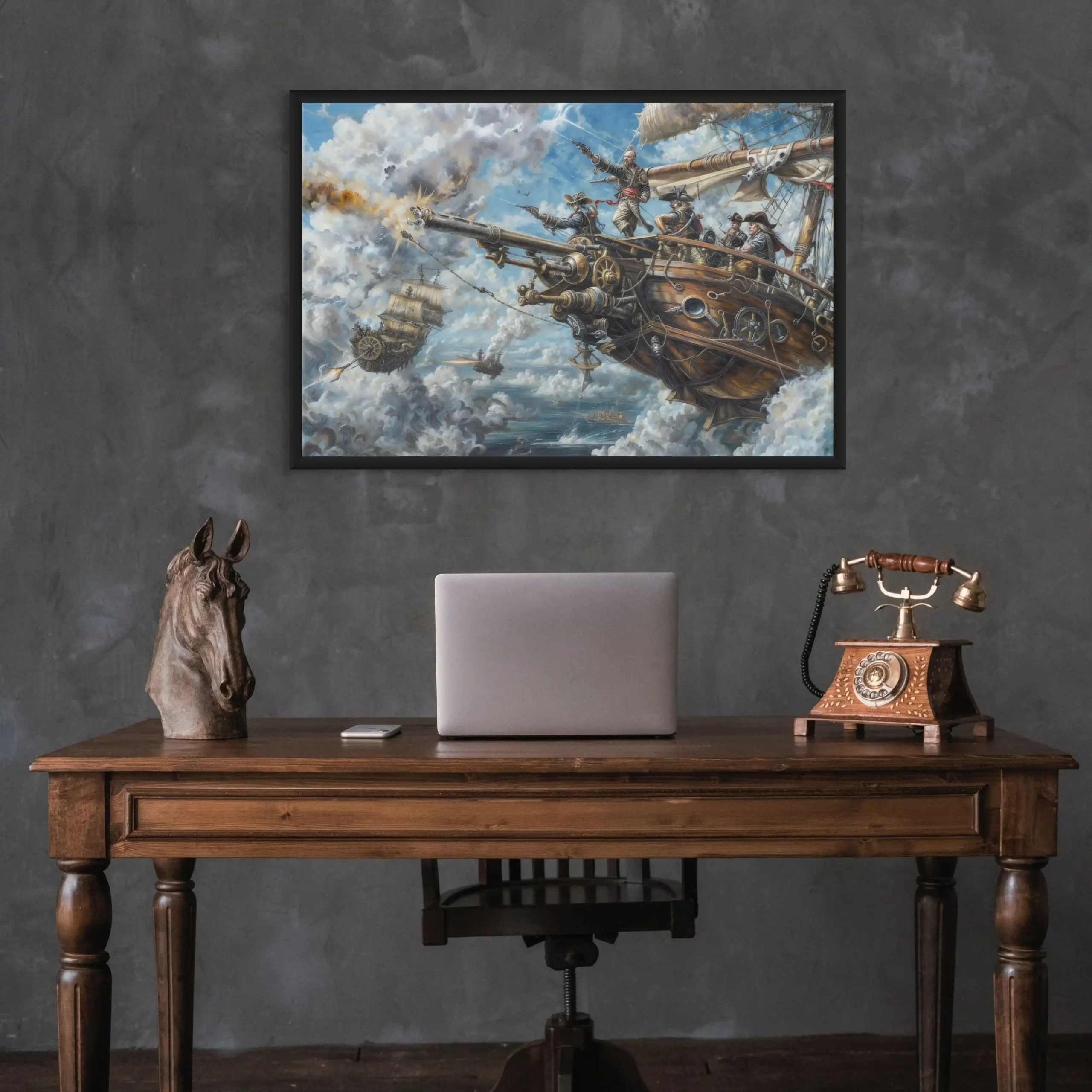 Évasion Spectaculaire avec « L’Épopée Steampunk » – Une Affiche Encadrée aux Horizons Fantastiques