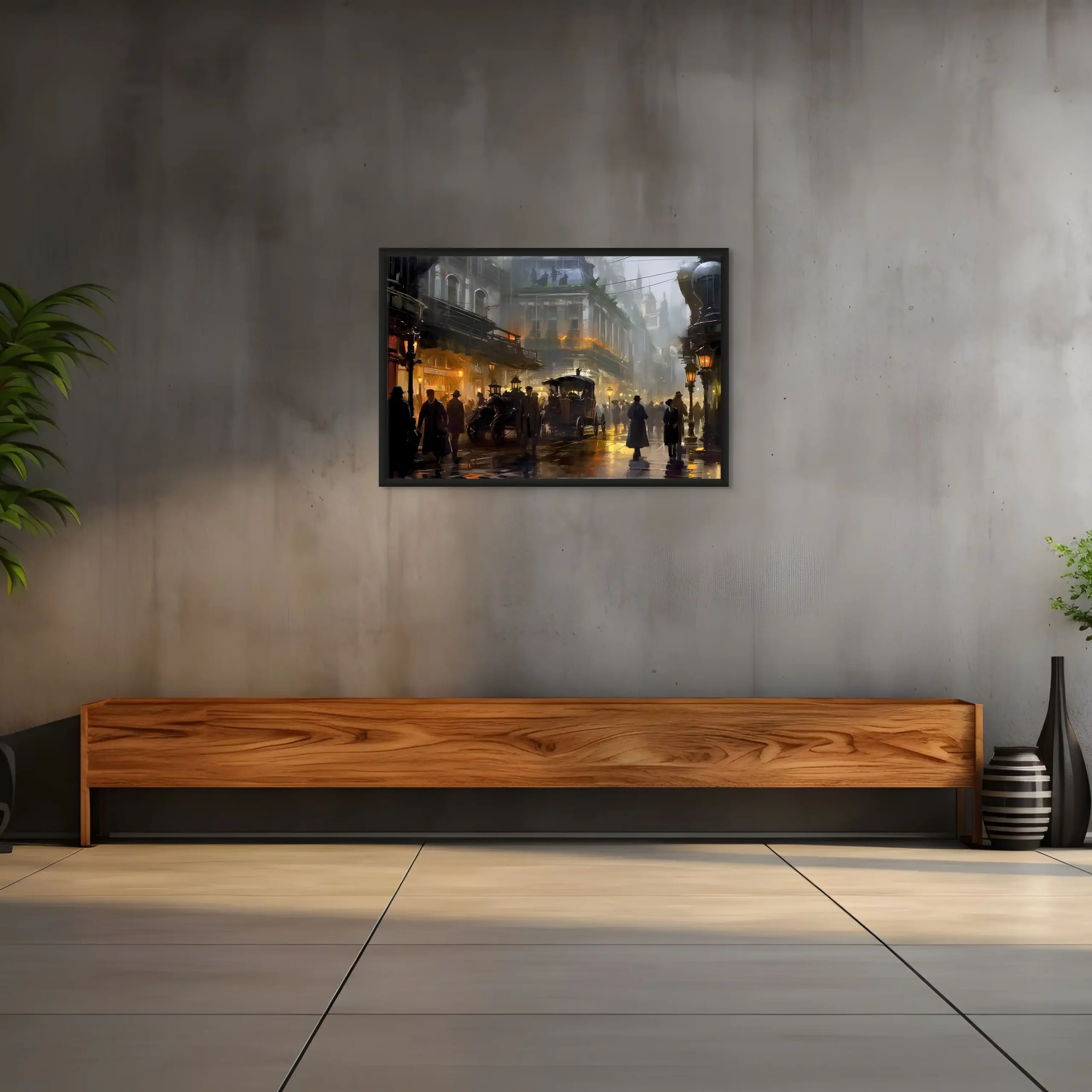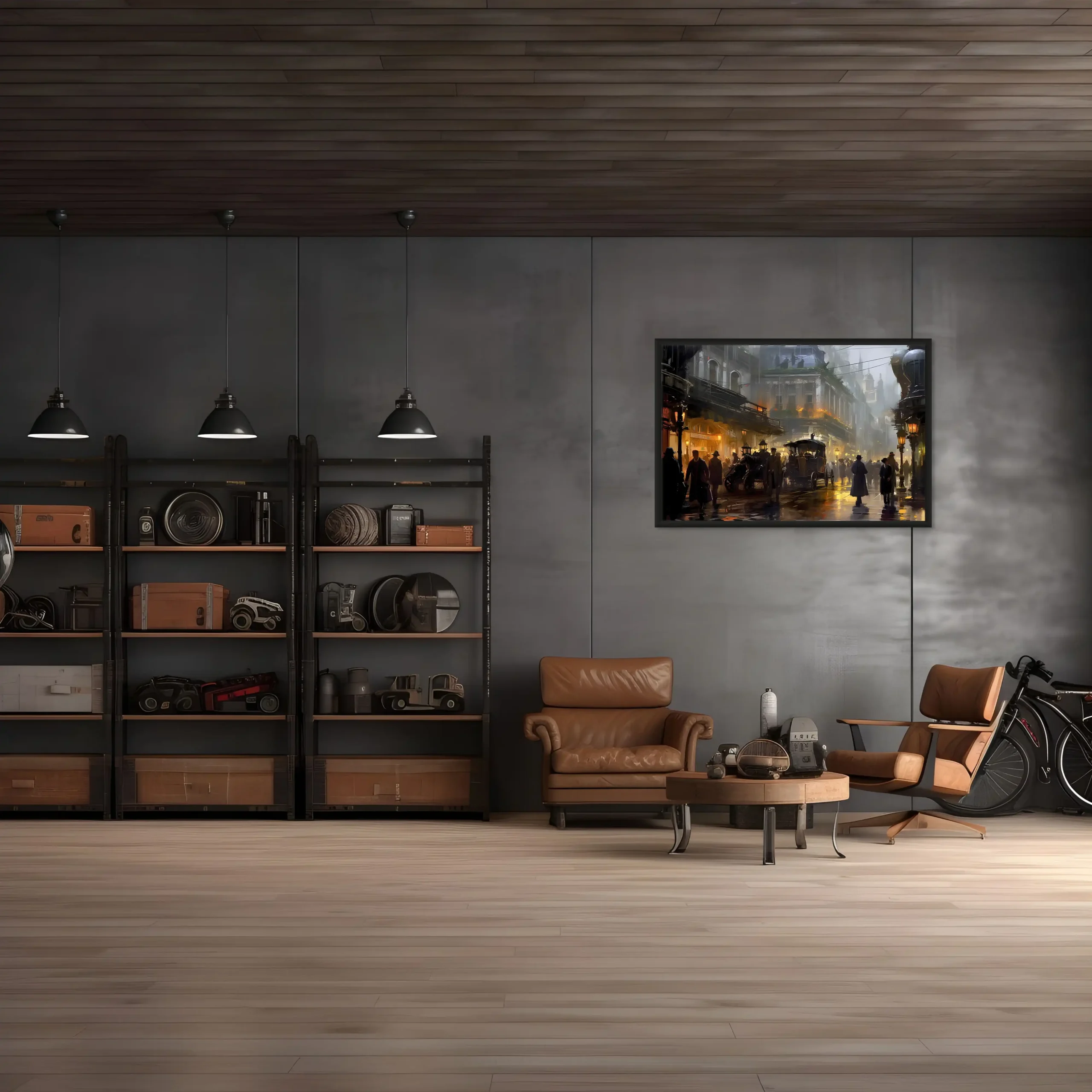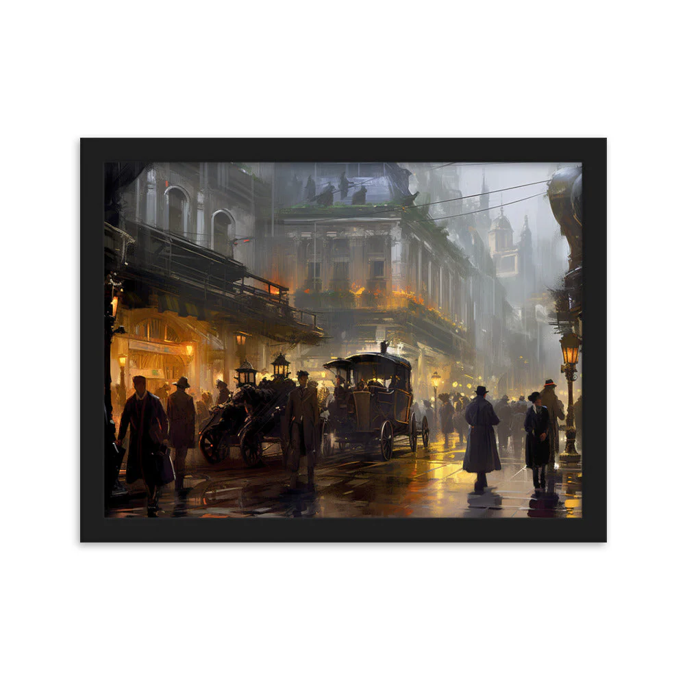 Plongez-vous dans une représentation unique d’une cité des années 1920, alliant l’aura d’une ville vintage sous la pluie à la magie du steampunk. Évoquant la mystique d’une époque révolue, ce chef-d’œuvre est inspiré par des talents tels que Magali Villeneuve et František Dvořák.