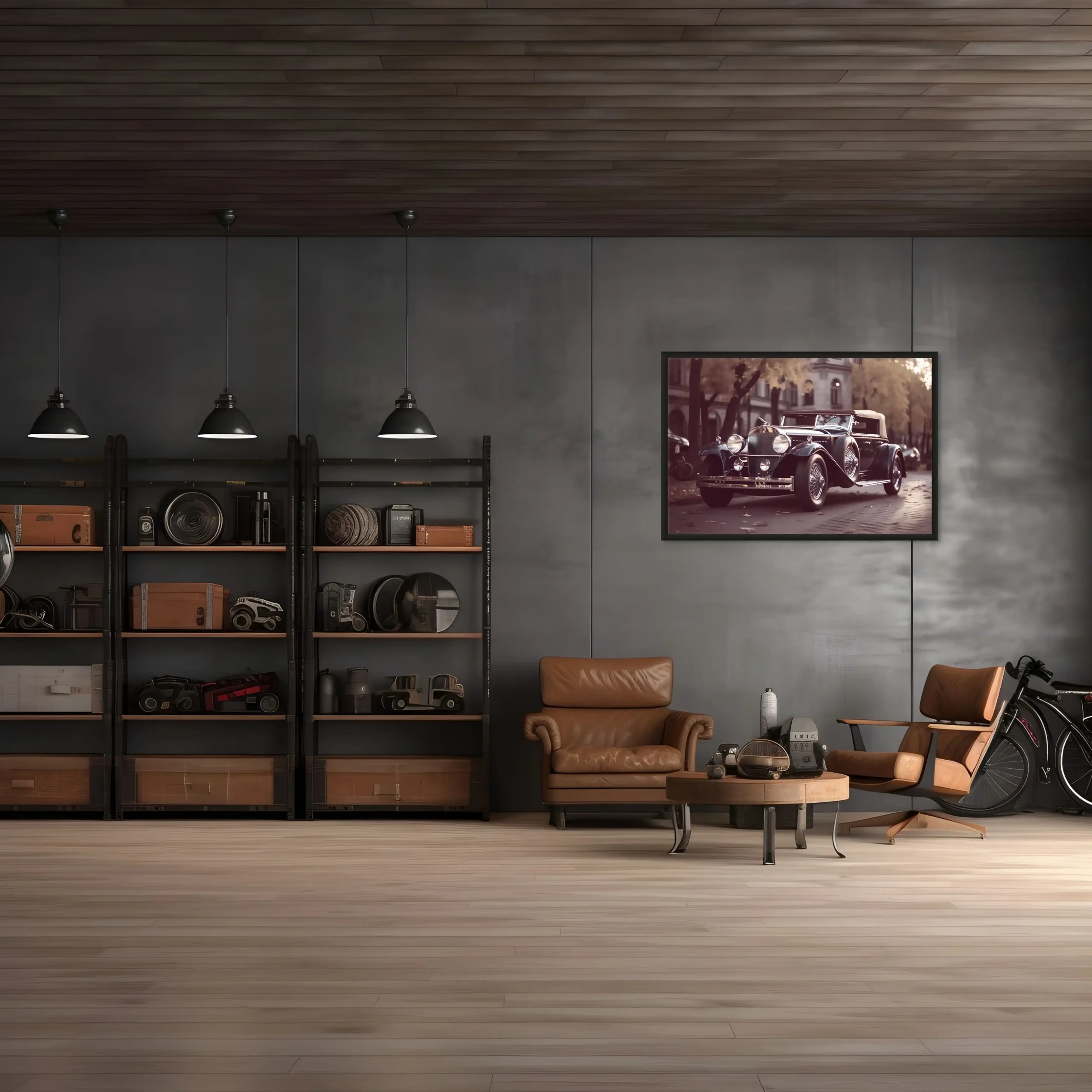 Ce tableau au cadre noir ou blanc apporte une touche classique et sophistiquée à n’importe quel espace, se mariant parfaitement avec tout type de déco murale. Qu’il s’agisse d’un salon rétro-mobile chez vous ou d’une galerie d’automobiles de collection, cette pièce saura se démarquer.