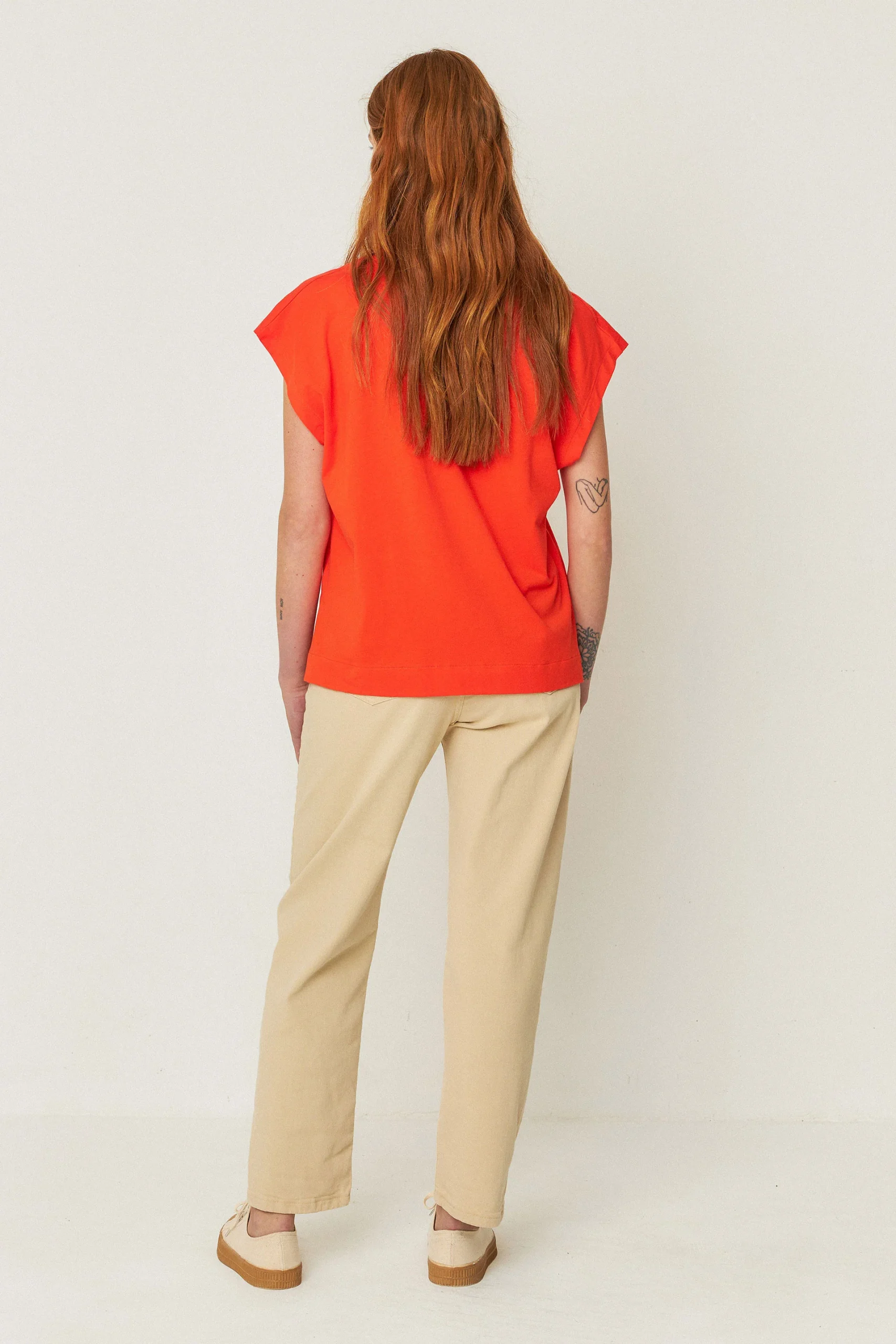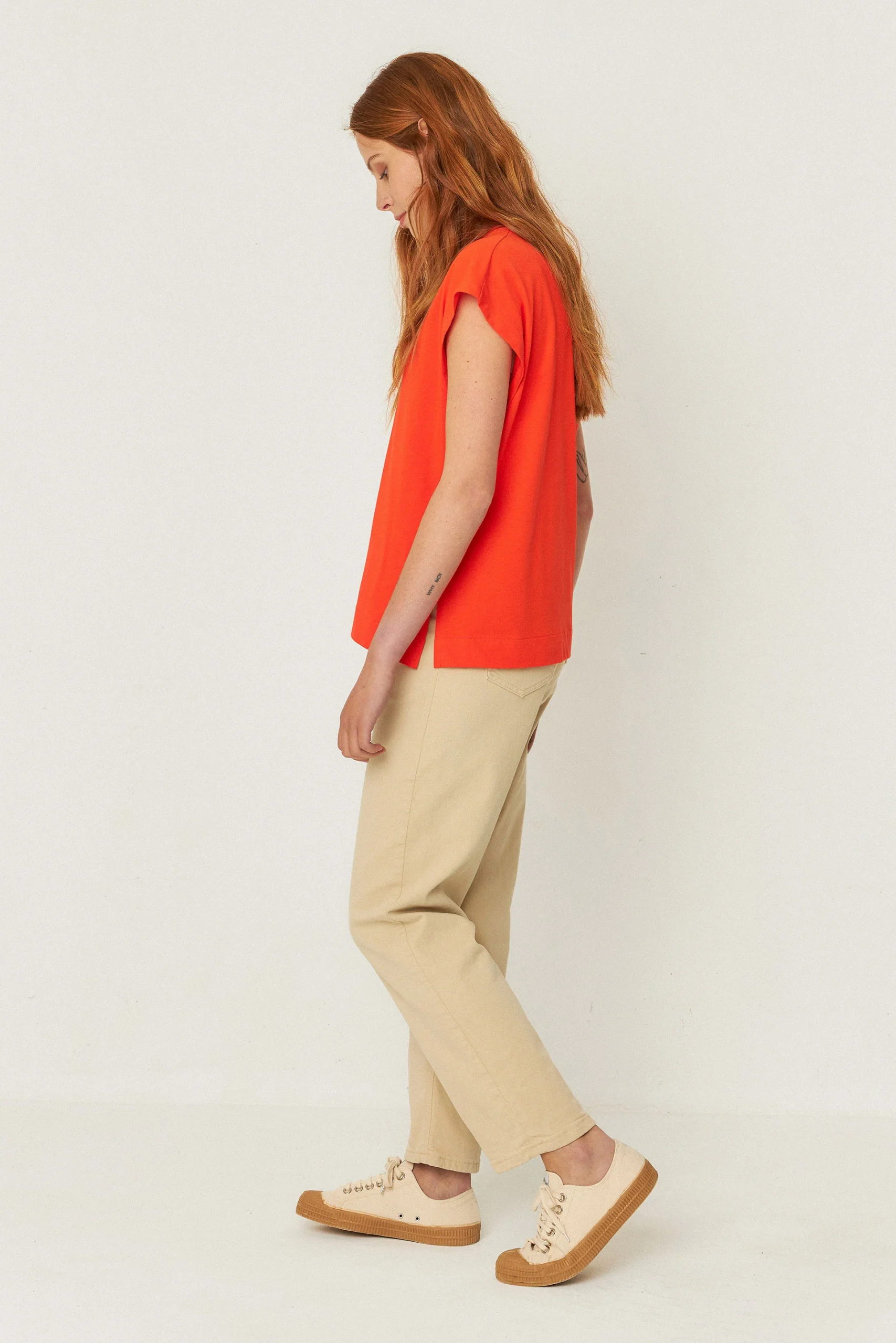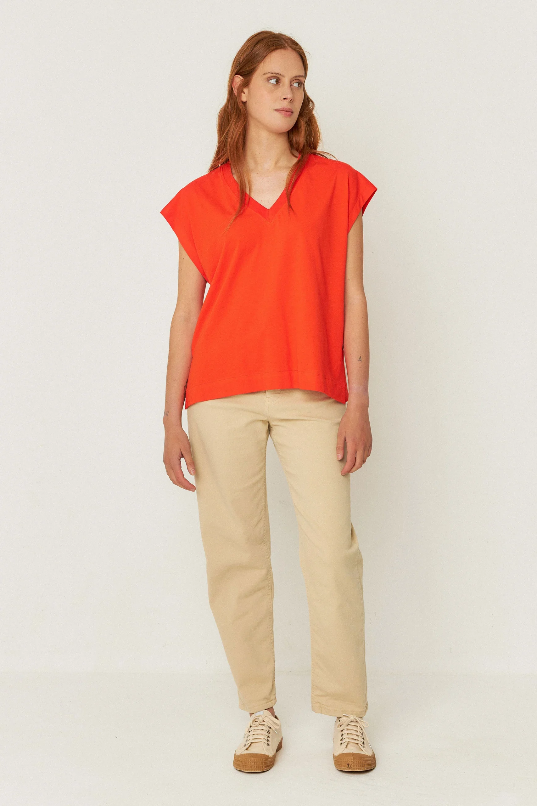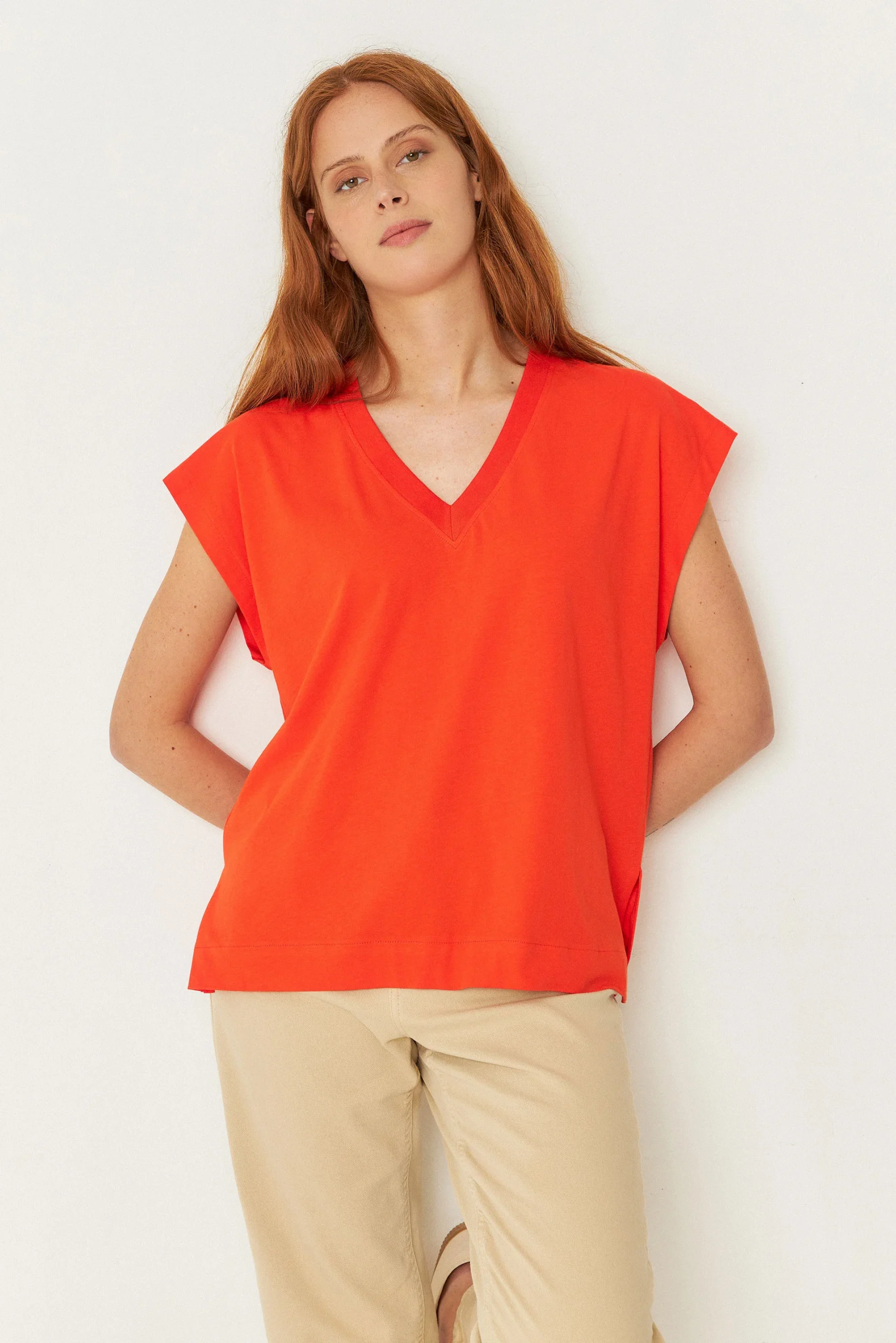 Tee-shirt col V en coton bio zuntz 4 · rouge tuile