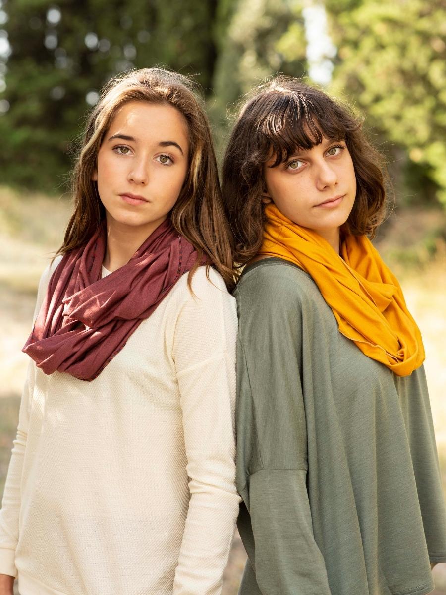 En maille 70% laine biologique et 30% soie naturelle, tous nos vêtements sont conçus, tricotés, teints, confectionnés et brodés en France.