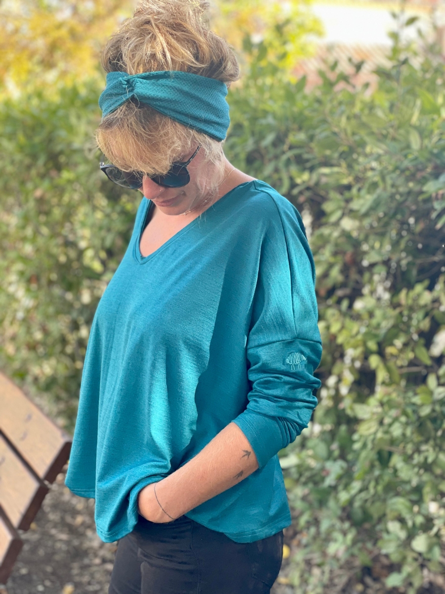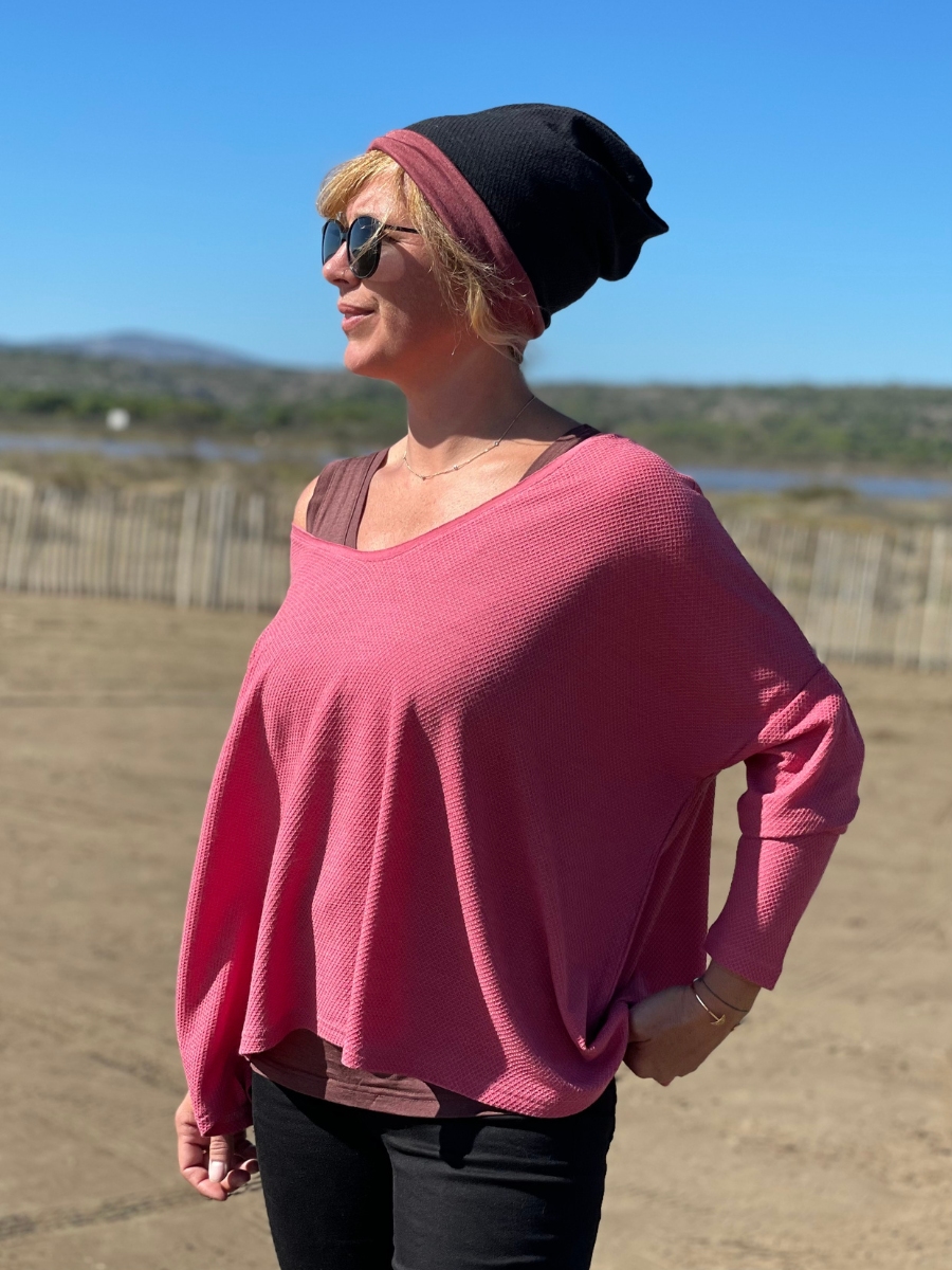 Le nouveau TeePull ! Un top oversize femme qui se porte aussi bien dans un sens que dans l’autre ! Col arrondi ou V, comme le Duo.