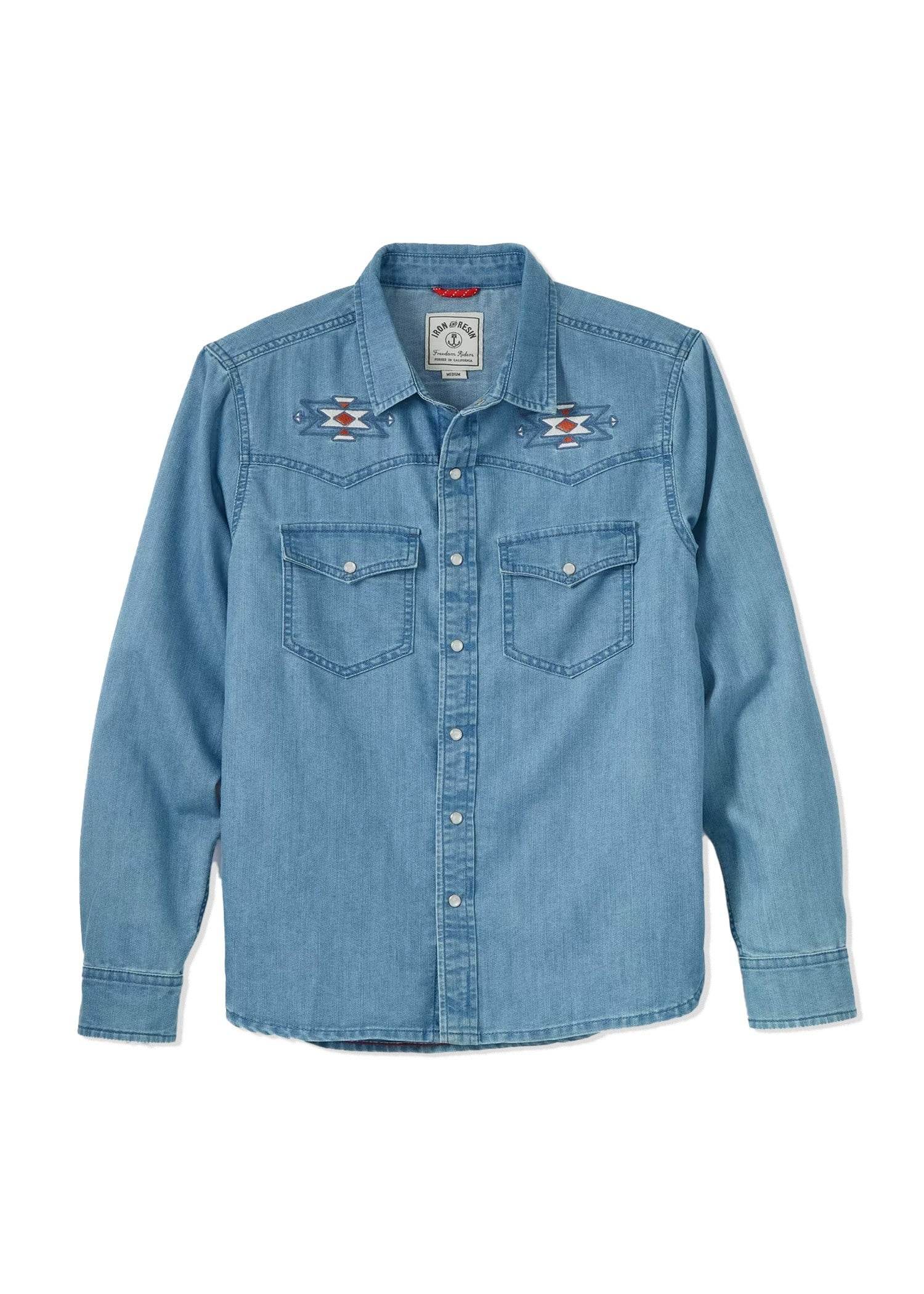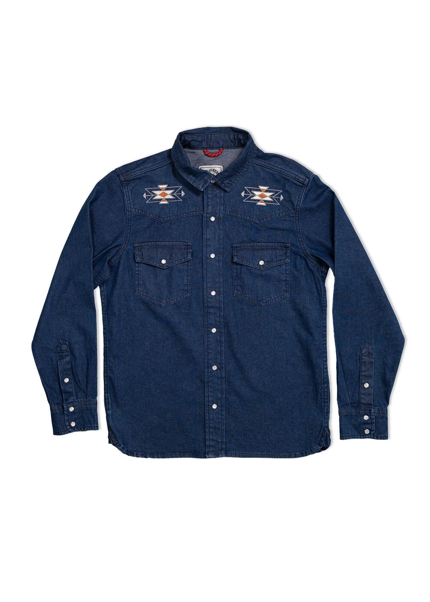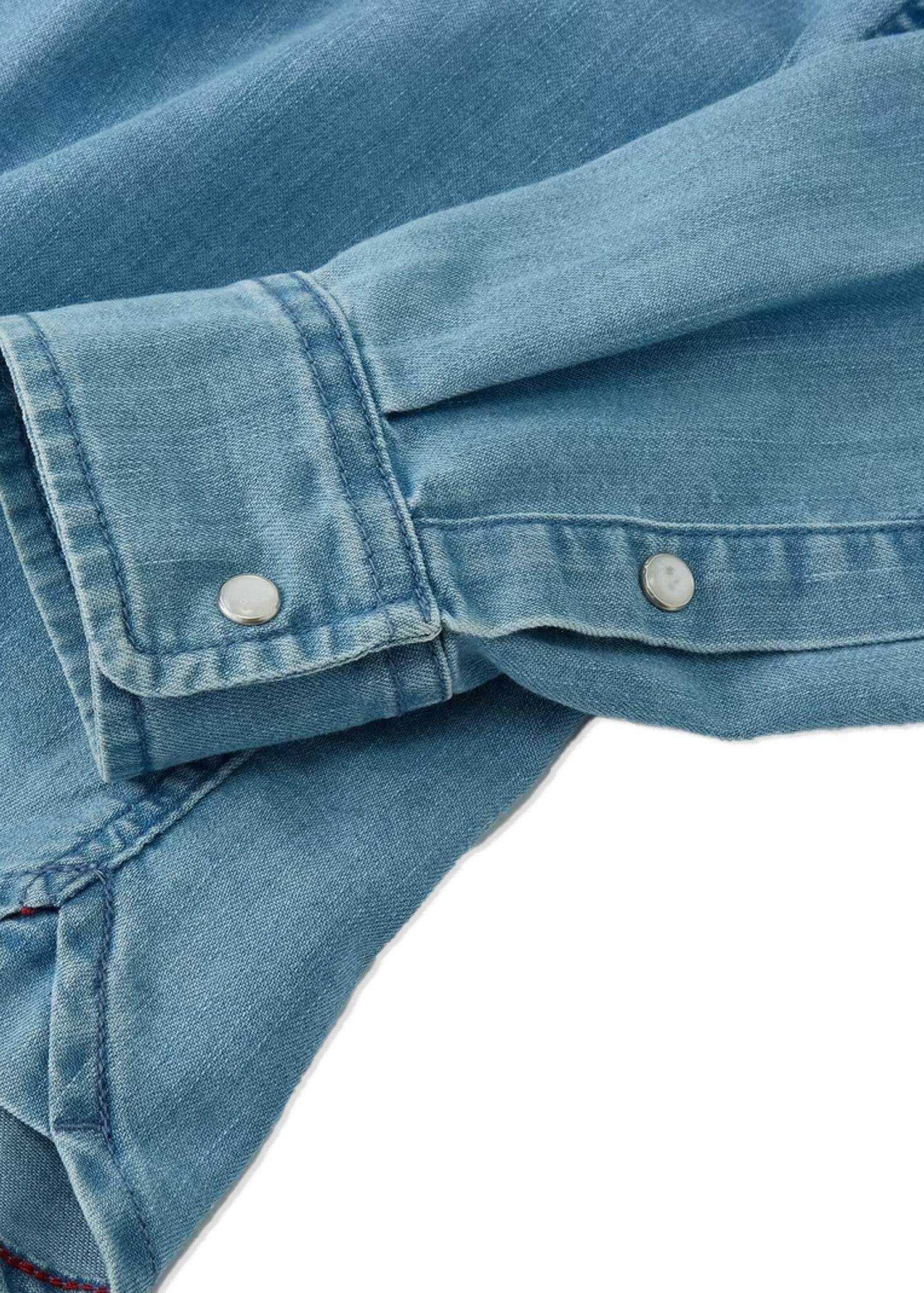 Notre interprétation de la chemise western moderne avec des boutons pression pour une ouverture et fermeture rapide. Elle est dotée d’un empiècement d’épaule western et d’une broderie personnalisée. Cette chemise a subit un important délavage qui lui donne un aspect vintage.