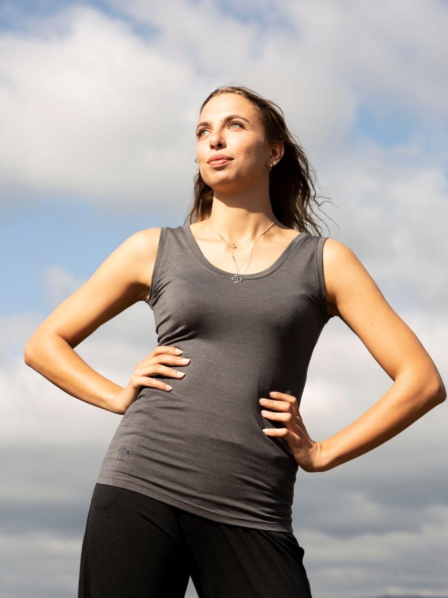 Au bureau, au sport ou en soirée, en dessus ou dessous, c’est le débardeur femme e laine mérinos bio et soie naturelle incontournable ! Coupé très près du corps, il épouse vos formes tout en douceur. Fabriqué en France.