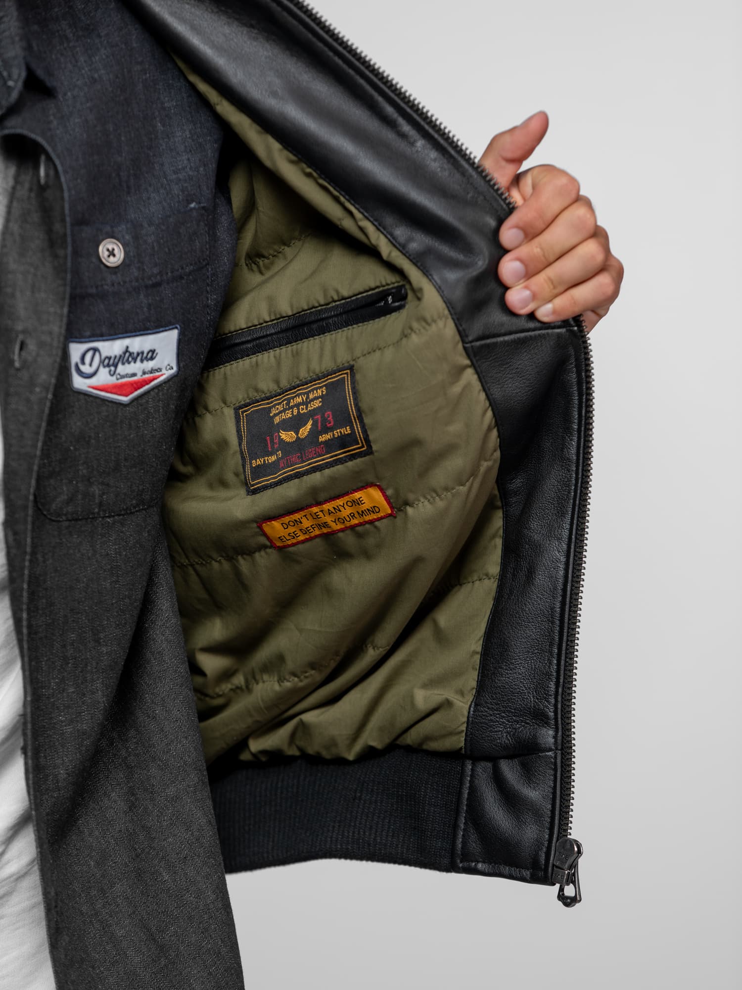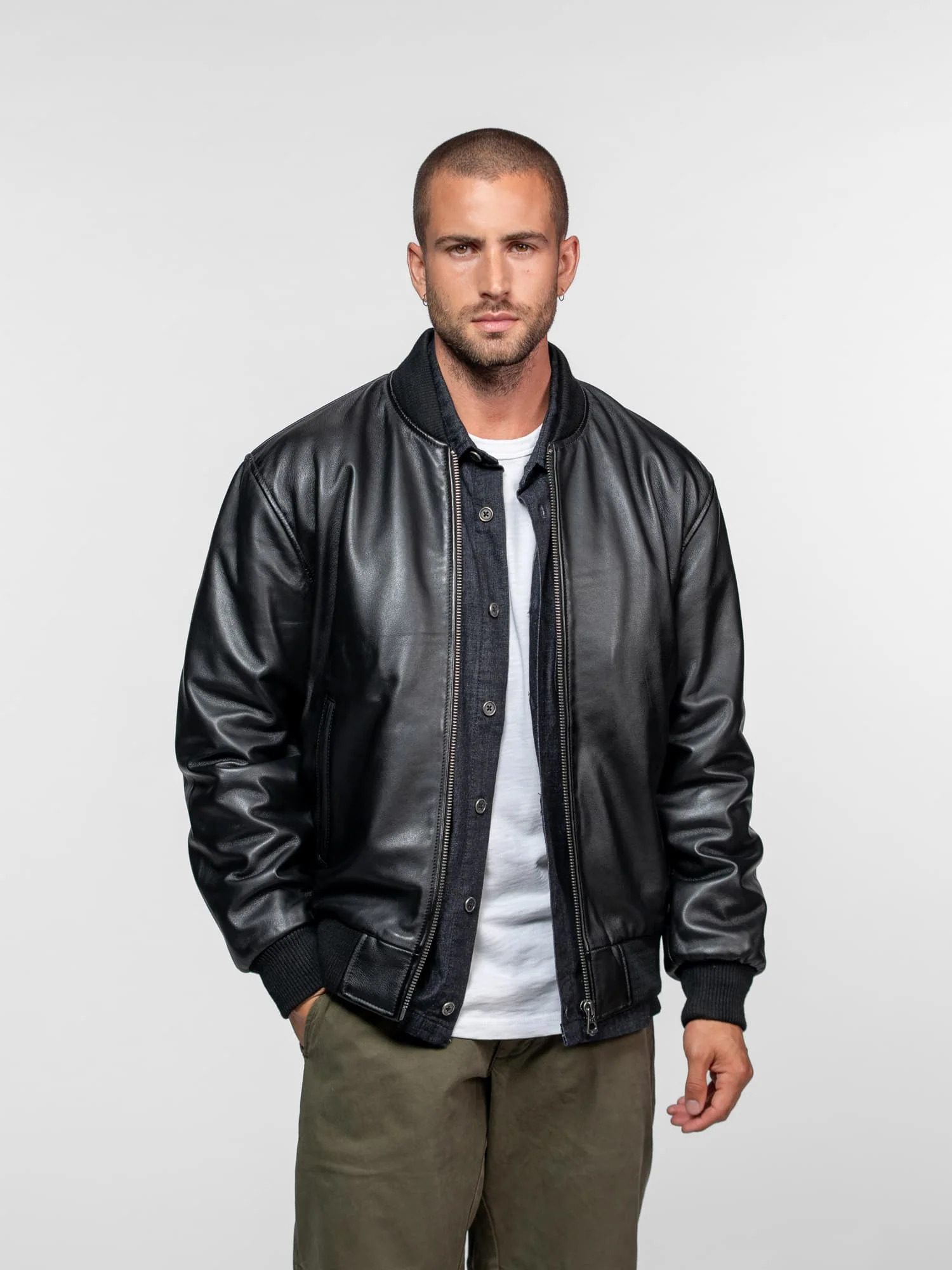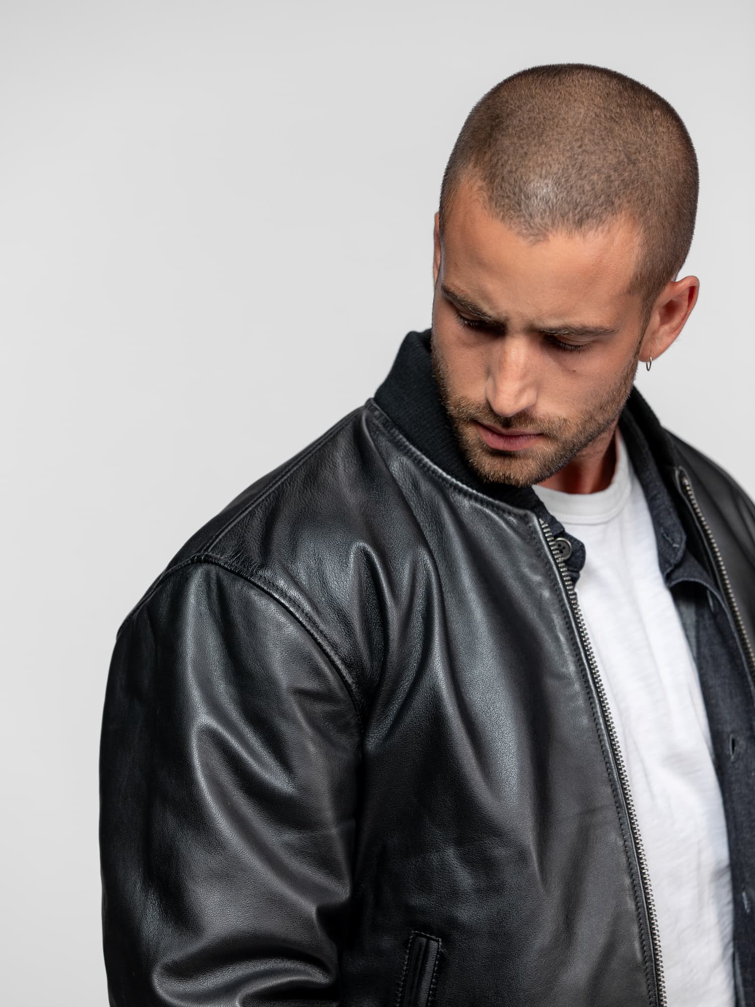 Ce bomber en cuir de mouton combine élégance et confort. Sa texture souple et son fini mat apportent un look moderne et authentique. Conçu avec une coupe regular, il possède des poignets et taille côtelés pour un ajustement parfait,