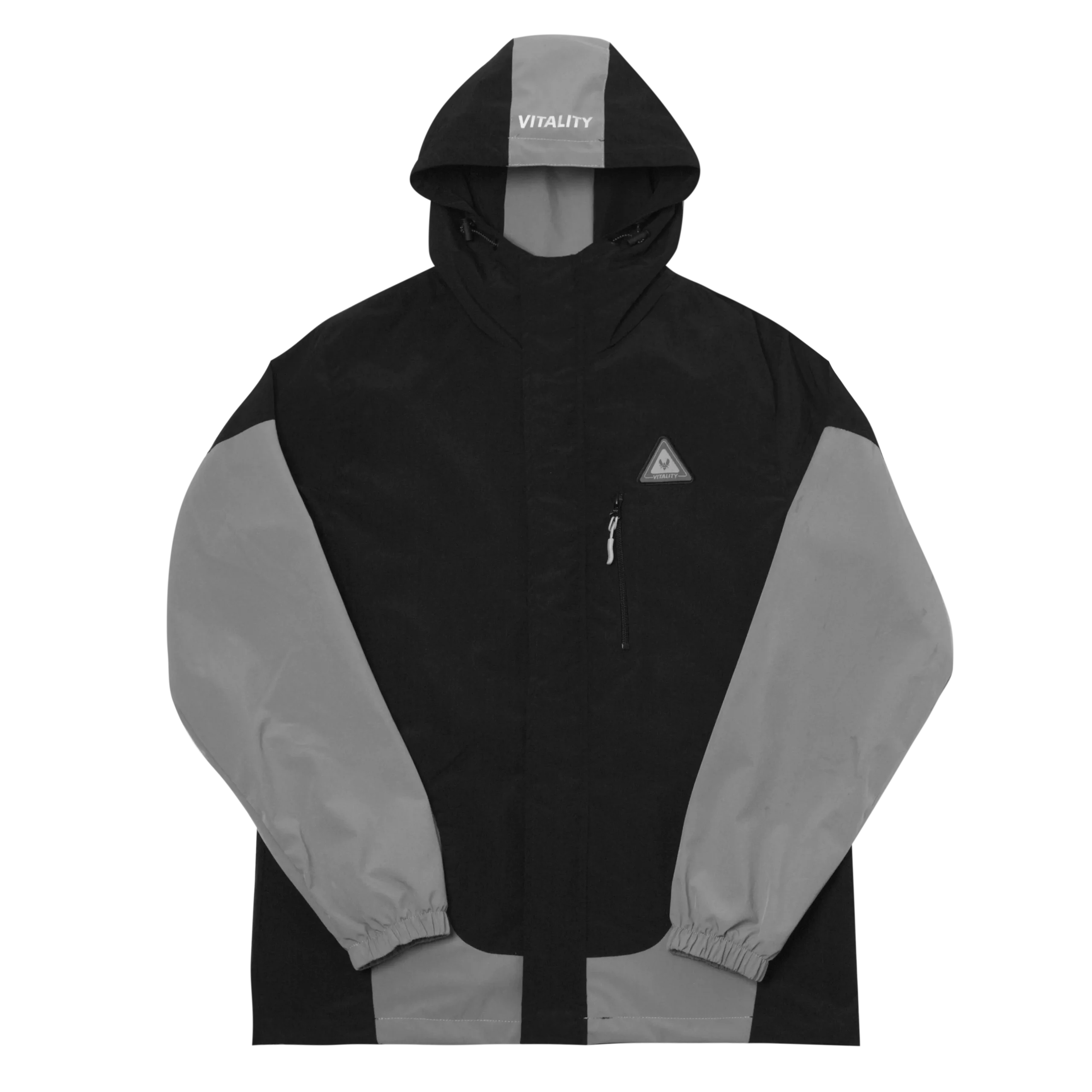 Cette veste coupe-vent Tech bicolore à capuche grise se pare du logo de ton équipe préférée Team Vitality. Tu retrouveras le label Vitality sur la manche droite, ainsi qu’un imprimé réfléchissant Vitality sur la capuche. Sur ce coupe vent, tu as deux poches ouvertes sur les côtés, ainsi qu’une poche zippée sur la poitrine à côté du badge. Les cordons de serrage sur la capuche, ainsi qu’en bas de ta veste te permettront d’ajuster ton coupe-vent comme tu le souhaites. Cette veste en nylon est légèrement oversize pour un confort optimal.