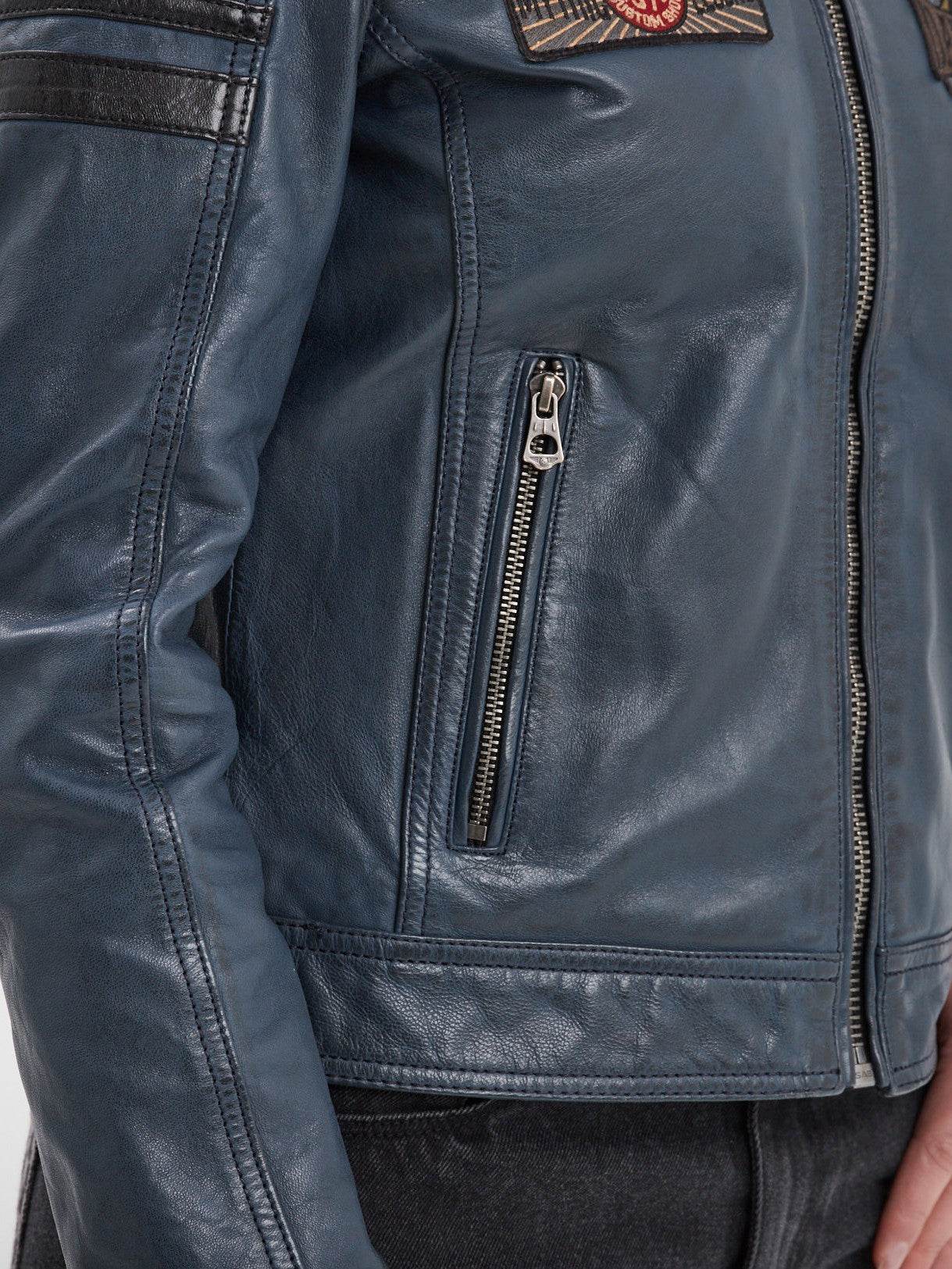 Le blouson Walkora puise son inspiration dans les courses auto et moto d’époque avec un design très racing. Fabriqué en cuir d’agneau au tannage végétal, il possède de nombreux patchs brossés.