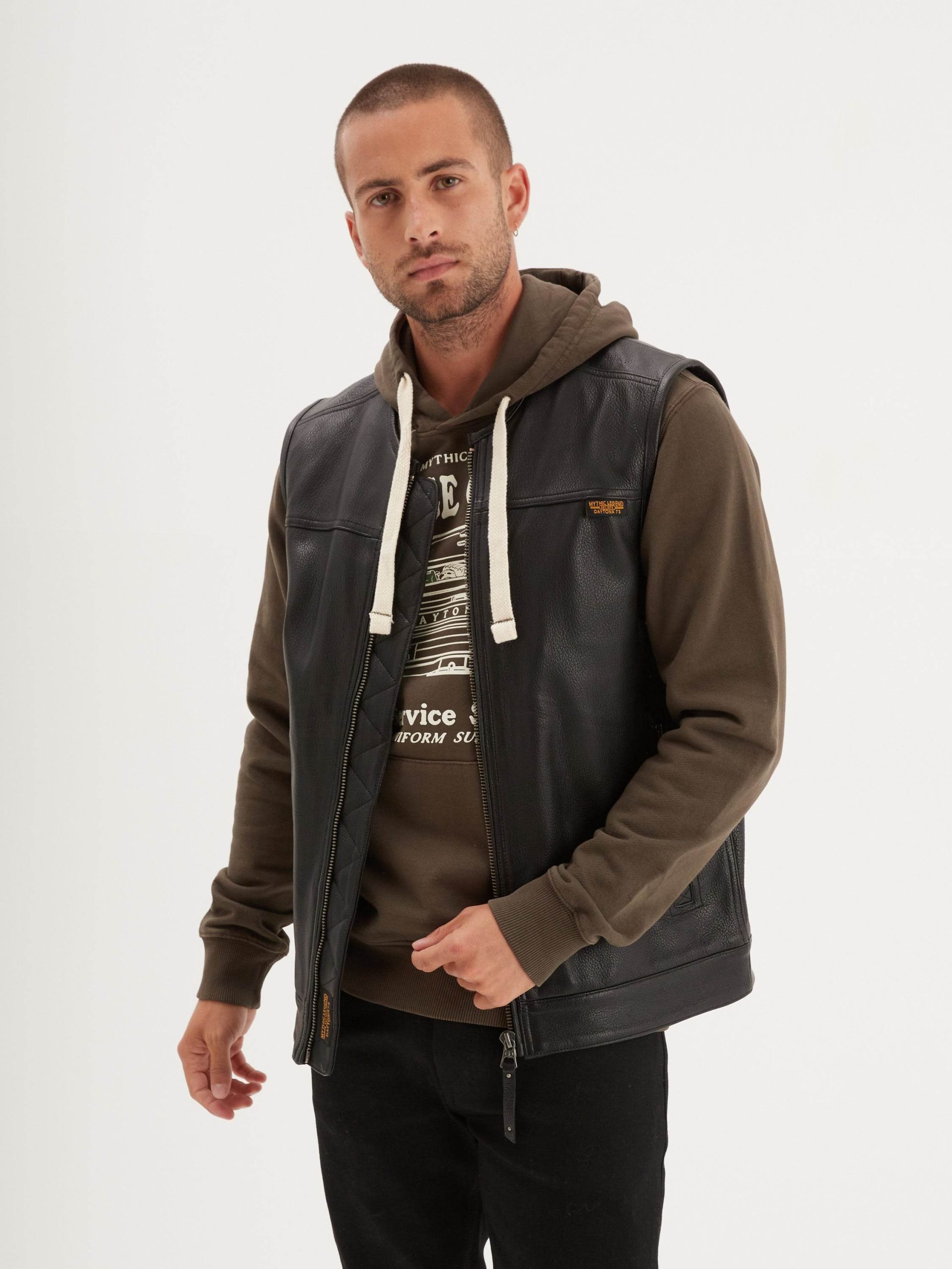 Le gilet en cuir est souvent associé à l’univers des bikers comme une pièce symbole de virilité. Son utilisation est souvent détourné par les amateurs de mode.