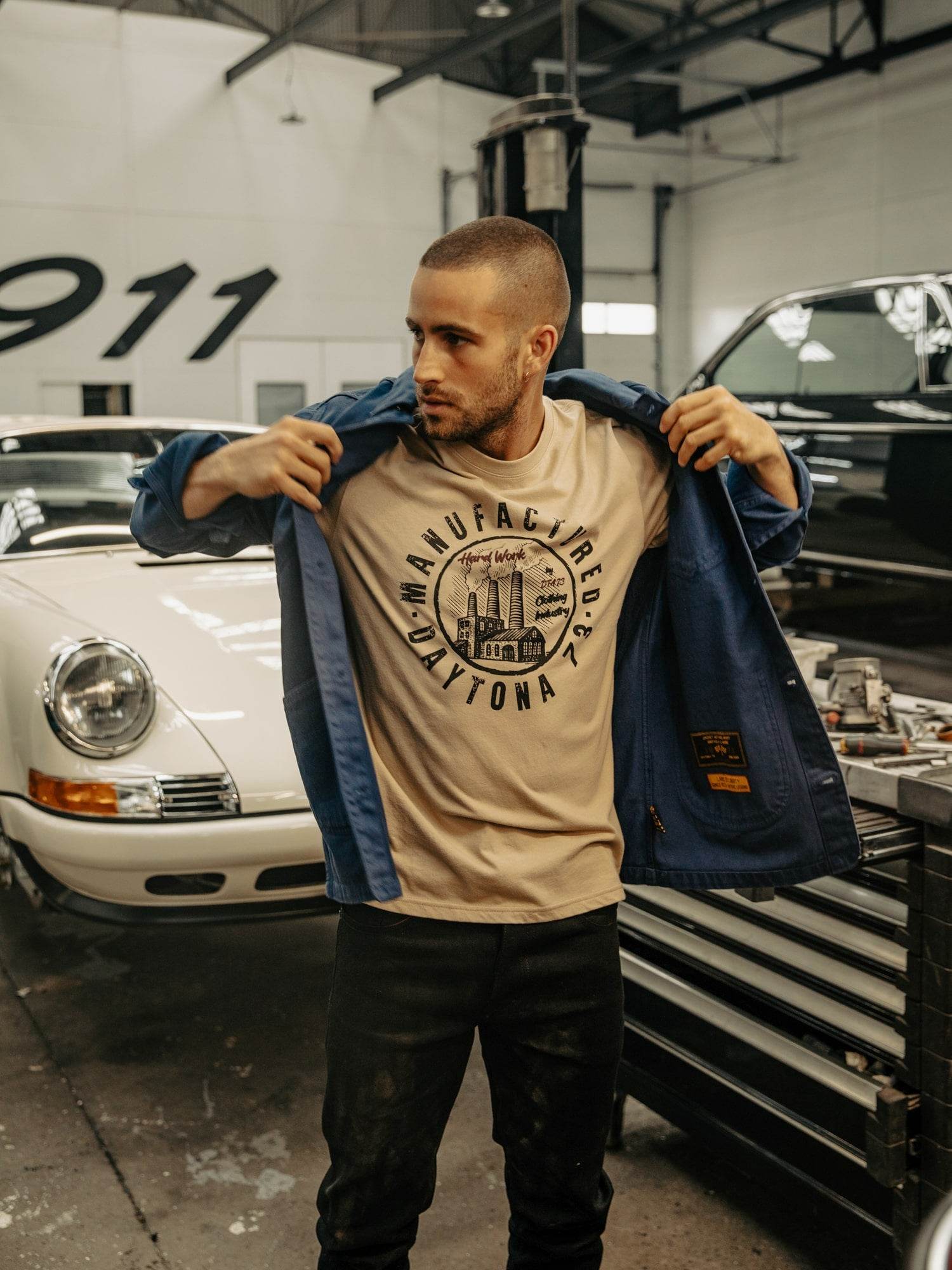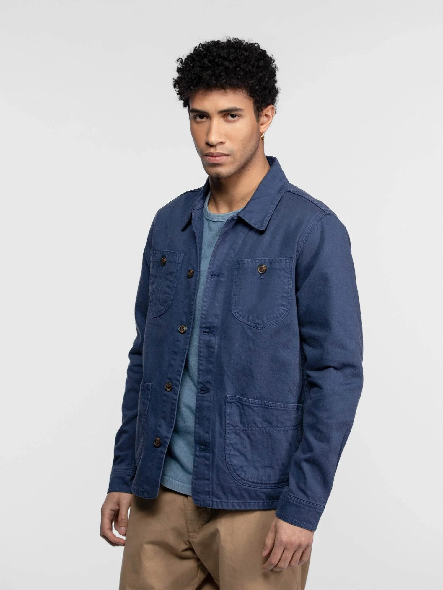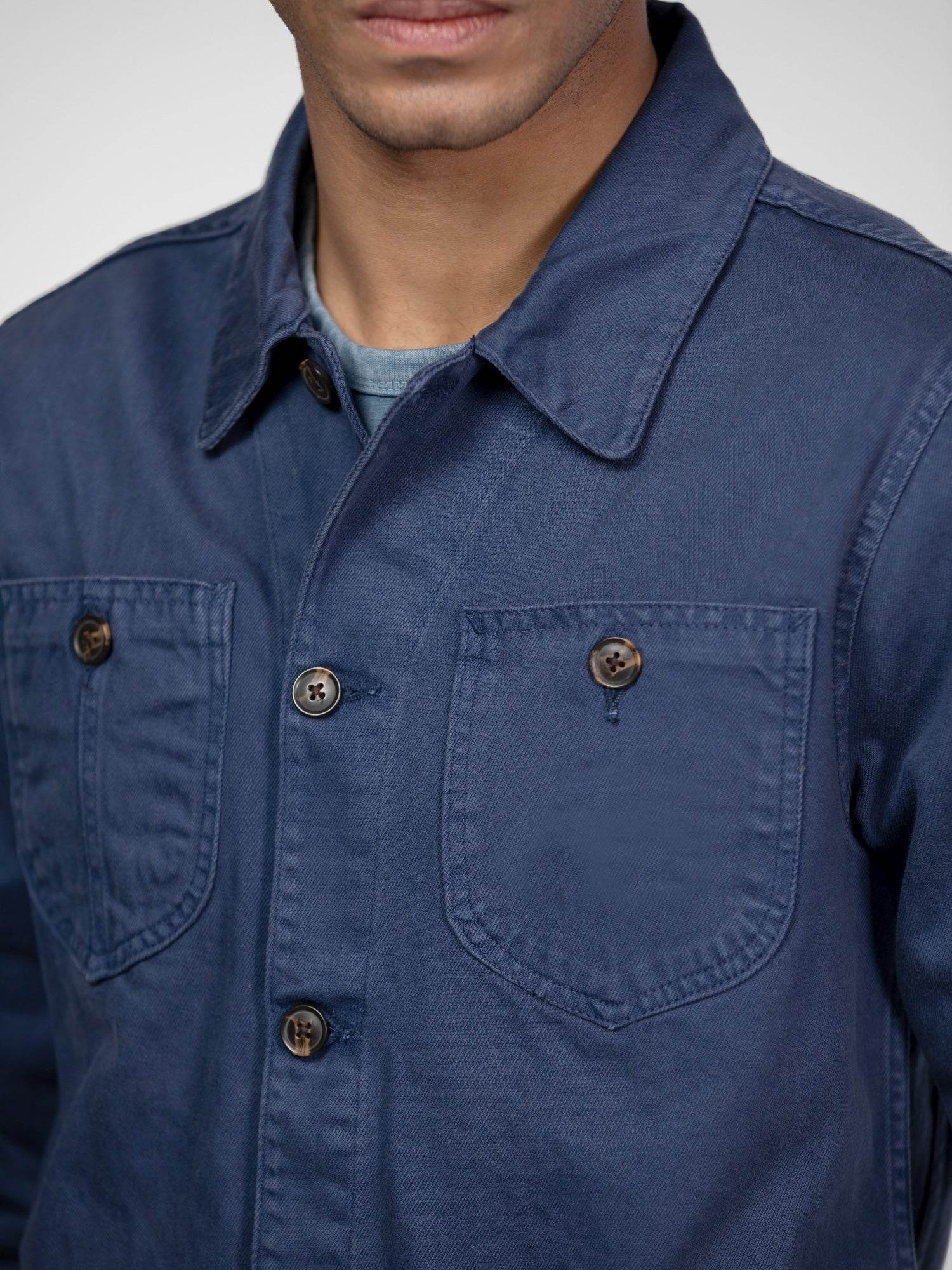 Cette veste de travail en coton bull denim est un vêtement robuste et confortable, fabriqué dans un tissu épais et résistant de 385 grammes. Sa couleur bleu de Chine nous ramène à l’époque ouvrière et notamment des mécaniciens.