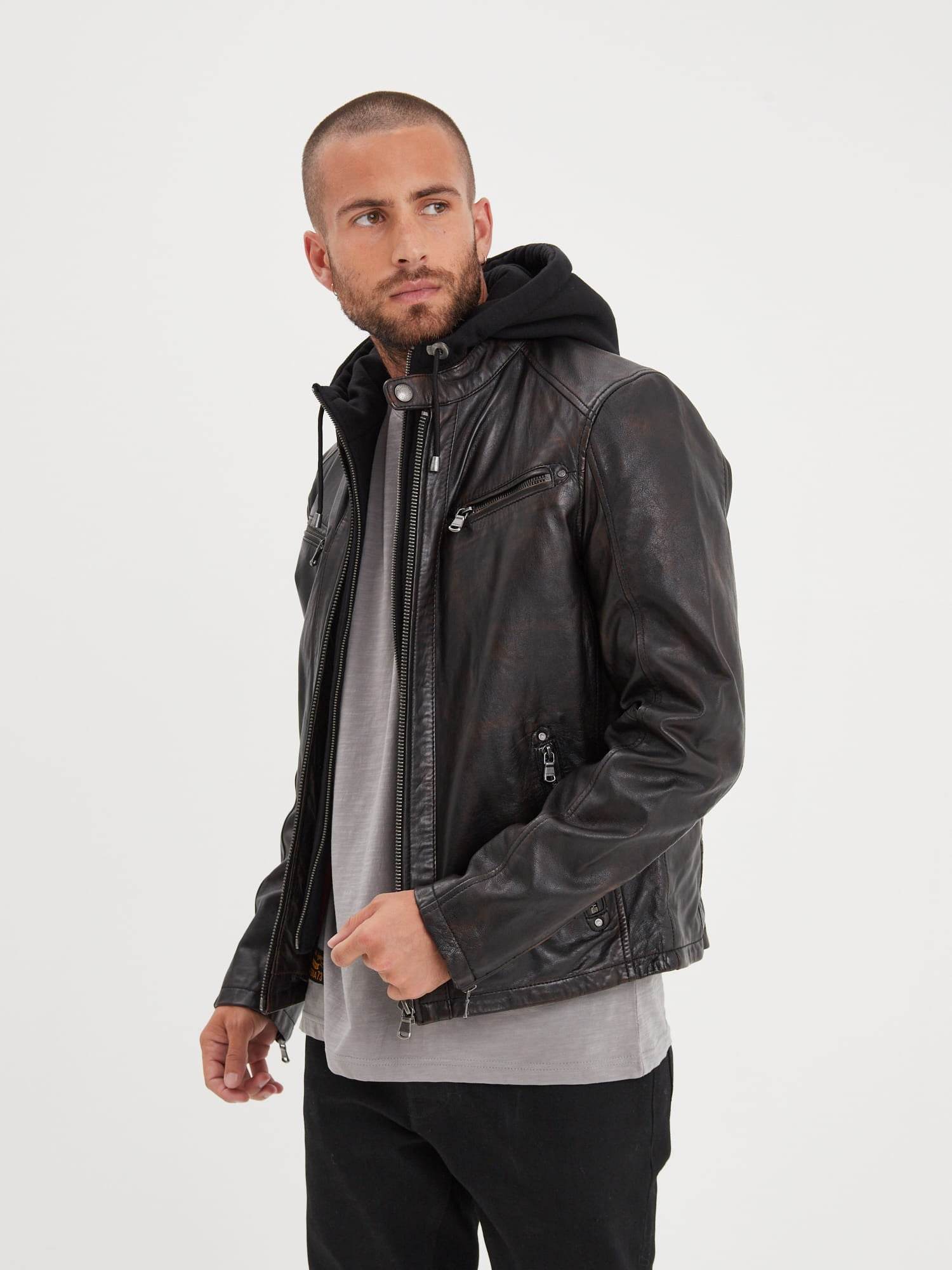 Winstoner – Blouson a capuche cuir