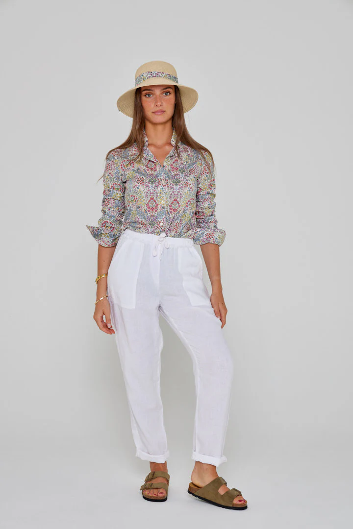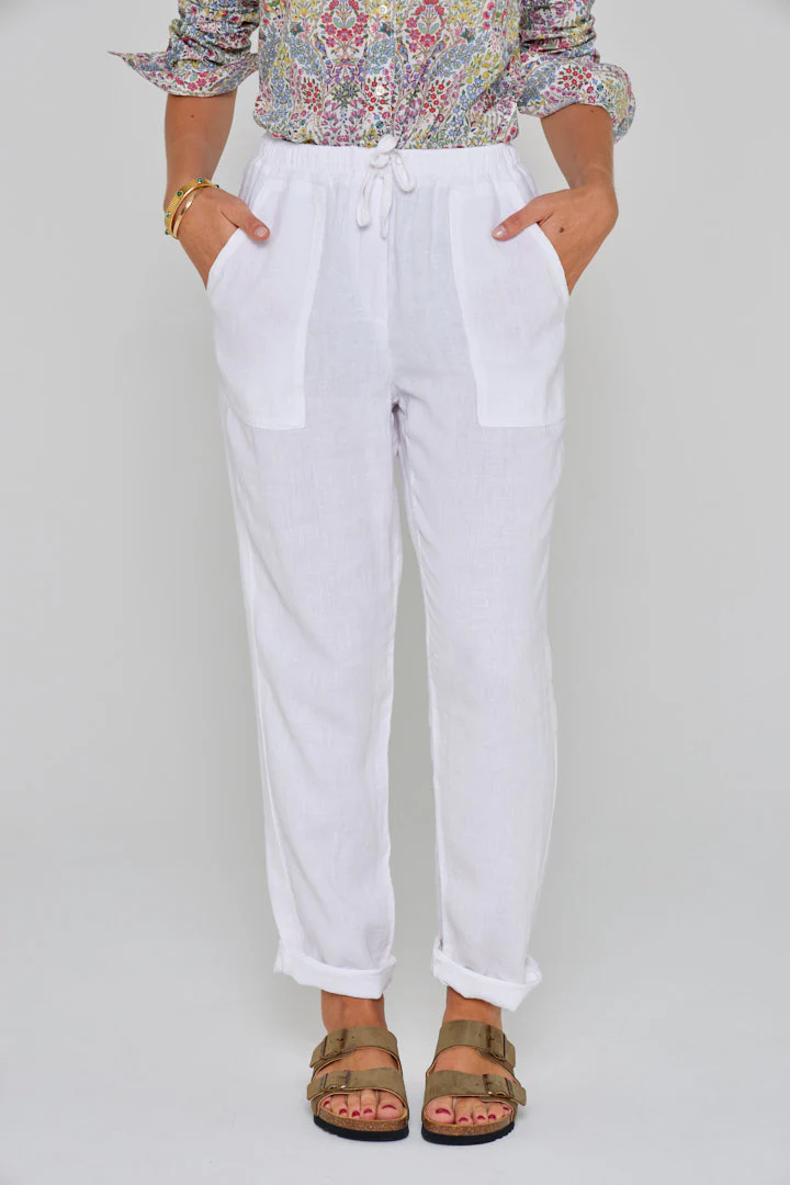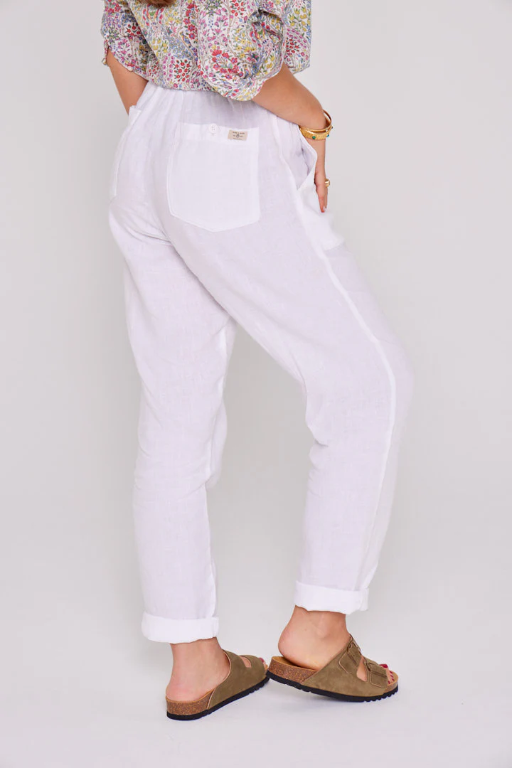 ZABOU – Pantalon Lin Coupe Droite – Femme – Blanc