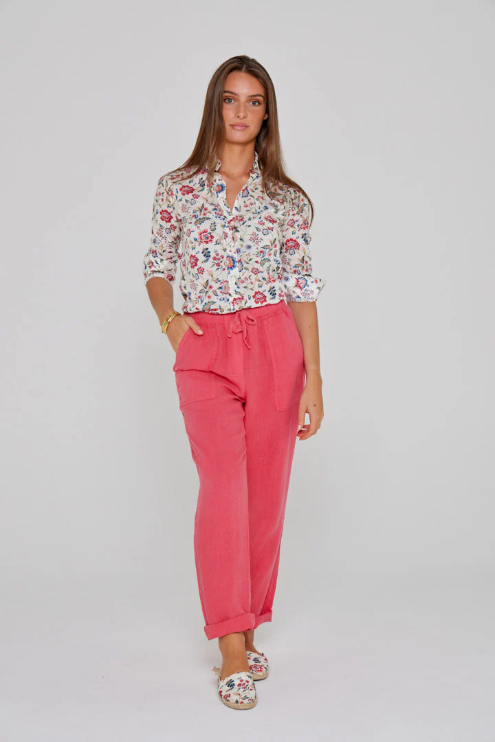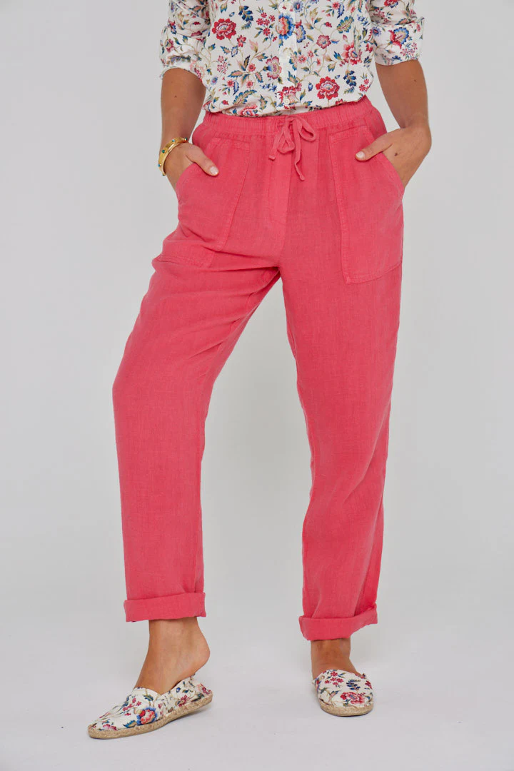 ZABOU – Pantalon Lin Coupe Droite – Femme – Fraise