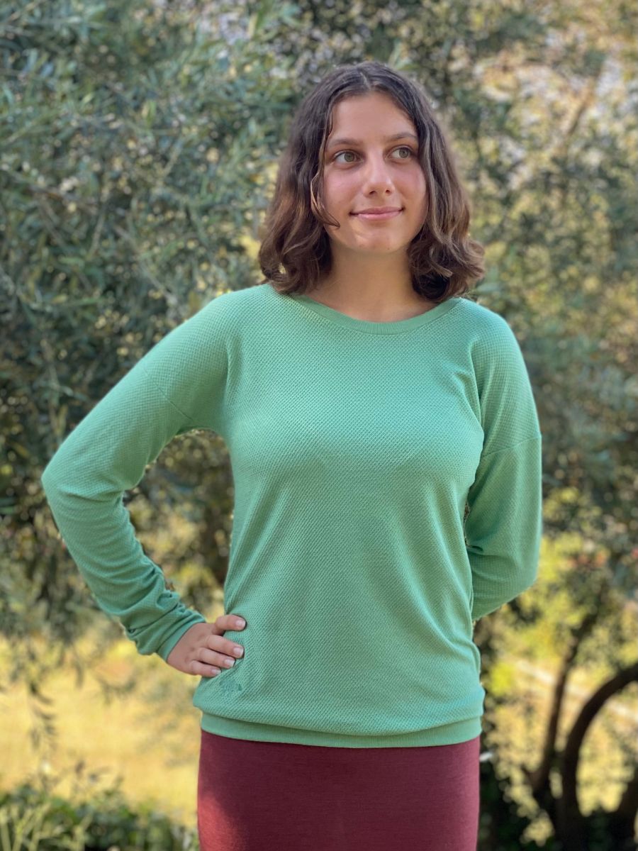 Le nouveau tee-shirt manches longues effet sweat, en nid d’abeille pour une touche chic et habillée !