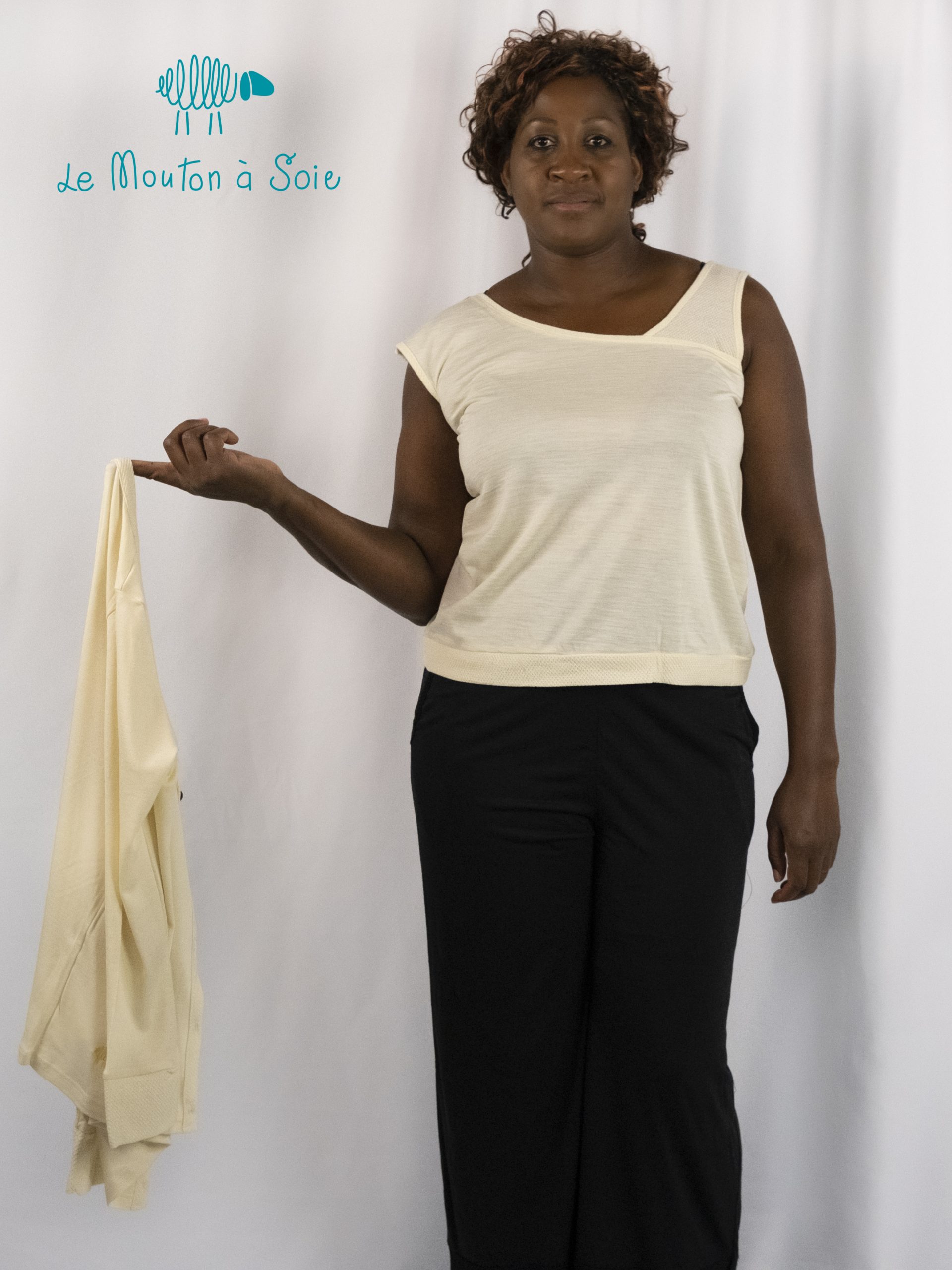 top Diagonal asymétrique femme laine mérinos bio et soie